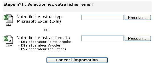 Uniquement le champ « Email » Une adresse par ligne |
