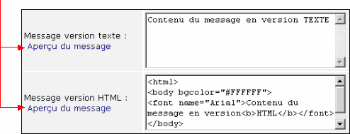 contenu (HTML ou Texte) de votre message avant son envoi.
