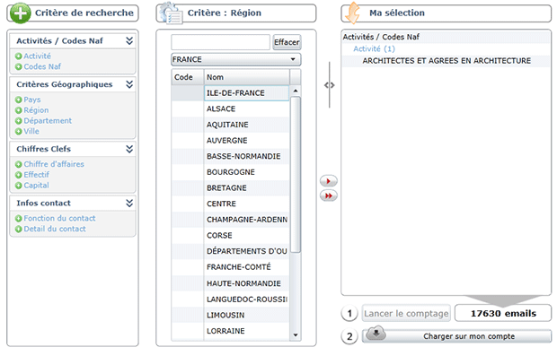 Ciblez vos prospects par activité, fonction, région, département, ville ..